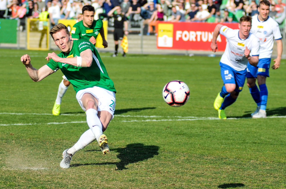 W 45. minucie sobotniego spotkania sędzia Tomasz Wajda podyktował rzut karny dla zespołu trenera Petra Nemca za faul na Michale Jakóbowskim. Pewnym uderzeniem w górny róg bramki “jedenastkę” wykorzystał Michał Żebrakowski i wyprowadził gospodarzy na prowadzenie. – Myślę, że był to dla mnie jeden z ważniejszych goli w dotychczasowej karierze, bo dzięki niemu udało nam się wygrać to niezwykle ważne spotkanie. – mówi napastnik Warty Poznań.