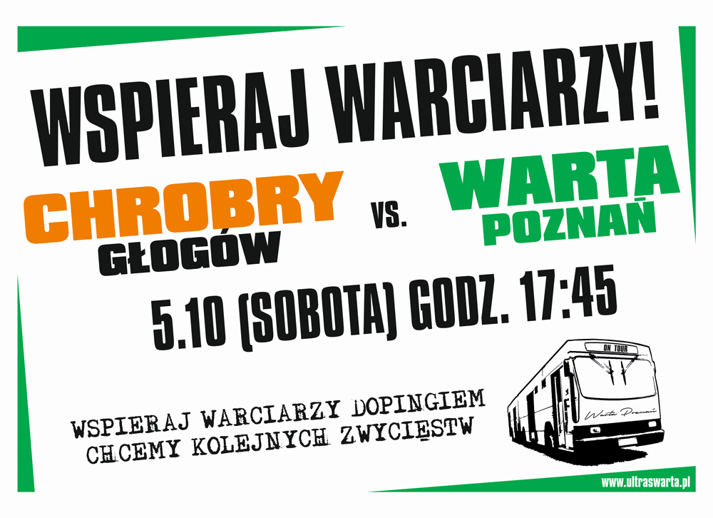 Stowarzyszenie kibiców “Zielona Strefa” organizuje wyjazd autokarowy na mecz 12. kolejki Fortuna 1 Ligi z Chrobrym Głogów. Spotkanie zaplanowano na...