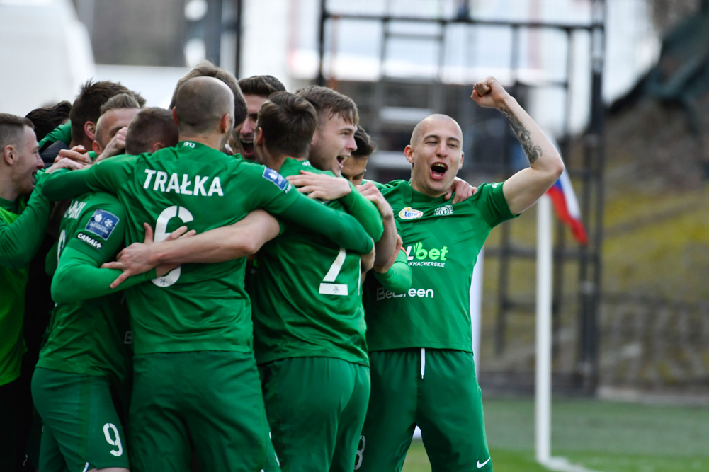Tak naprawdę, już po pierwszej połowie gości powinni schodzić do szatni z kilkubramkową przewagą. Zagrali inaczej niż w większości poprzednich spotkań, w których rozkręcali się raczej powoli, a gole na wagę zdobyczy punktowych strzelali po zmianie stron. W Zabrzy „Zieloni” spośród wielu bardzo dobrych okazji bramkowych wykorzystali tylko jedną, w 30. minucie. Mateusz Kuzimski opanował piłke, mimo że był naciskany przez rywali, podał do Jana Grzesika, a ten w polu karnym zachował mnóstwo spokoju. Przygotował sobie piłkę do strzału i zaskoczył Martina Chudego uderzeniem po ziemi.